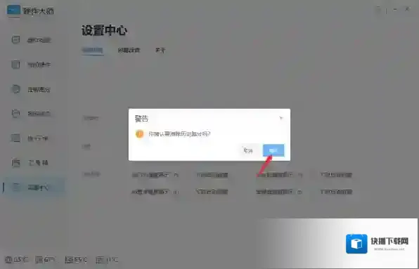 1、在硬件大师界面中,选择设置中心,点击清理历史跑分。