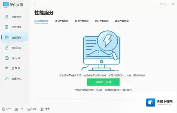 3、当我们再次点击硬件大师左侧的性能跑分,就看不到之前的跑分结果了。