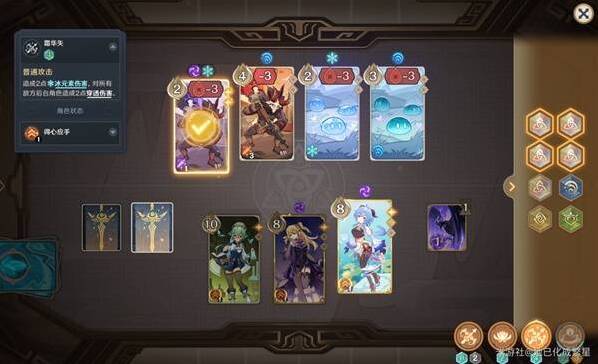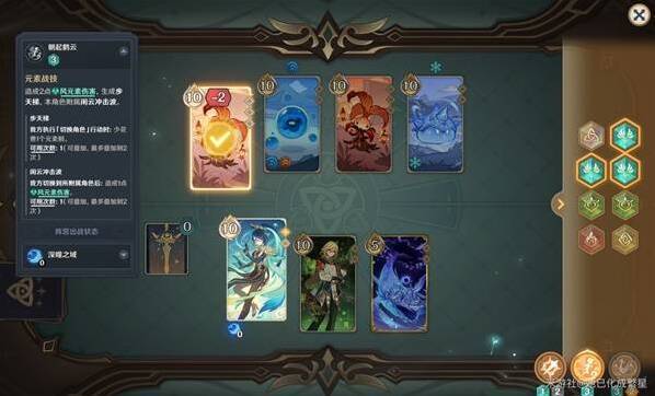 2、为了让大家减少凹度,笔者已经尽可能降低对元素骰子的需求,但是仍建议大家带上群玉阁、一掷乾坤、最好的伙伴等卡牌来增加骰子容错。