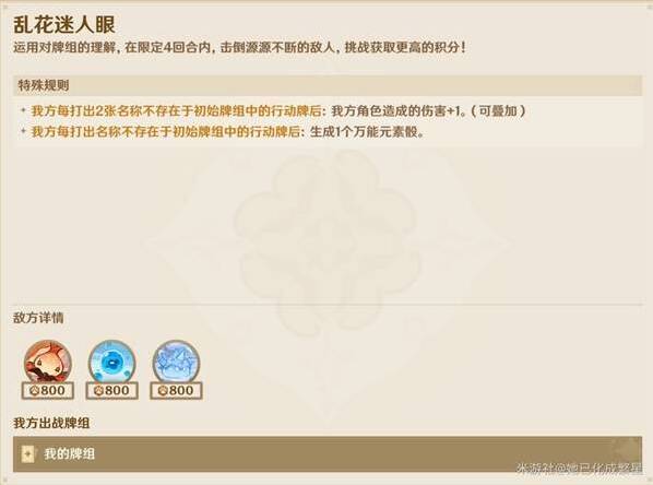 1、无手牌指的是手牌除了烧牌换骰子之外不发挥任何效果,仅靠角色技能完成通关。