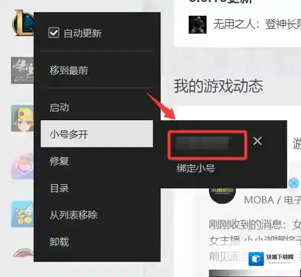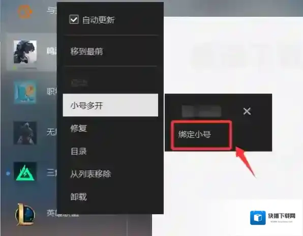 快播下载网游戏通体验过后发现,WeGame支持绑定多个小号,右键英雄联盟,点击小号多开,就能看到在已经绑定一个小号的前提下,还可以继续绑定小号,极大方便了多账号用户,无需再反复重新登录WeGame。