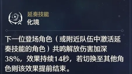 提高下一位登场角色的共鸣释放伤害,目前来说,只有具备比较高倍率的主C共鸣释放,能够比较好的吃到这个延奏技能的效果加成,比如桃祈、丹瑾、漂泊者·湮灭,而秧秧、炽霞虽然也能吃到,但是个体角色强度可能不是很让人满意。五星角色中,只有卡卡罗有一定收益,其他五星角色收益都不高。莫特斐是最特殊的,莫特斐的共鸣释放不锁面板,如果莫特斐在鉴心延奏技能之后,释放大招期间一直在场,就有收益,反之则没有,不过莫特斐的延奏技能可以加成鉴心的混元气旋。