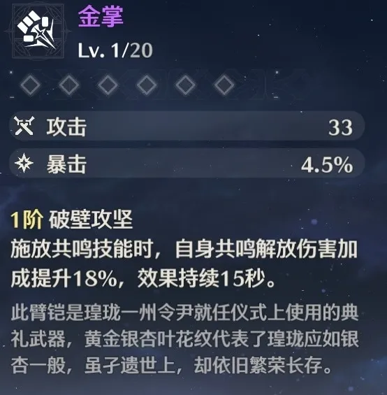 副词条选择:攻击力 暴击=暴击伤害 =重击伤害加成 共鸣释放伤害加成=共鸣效率 其他