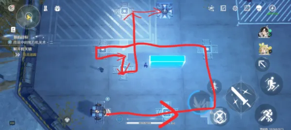第三关:与操作台互动第一次,右上,与操作台互动第二次,左,与操作台互动第三次,右下,与操作台互动第四次,上右
