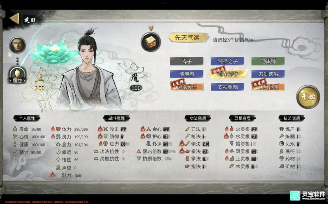 3、资质:元素资质能高尽量高,以免出现在宗门无法晋升的情况出现。
