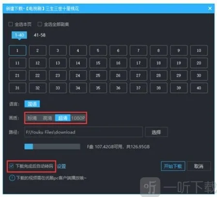 3、勾选下载完成后自动转码后的设置。