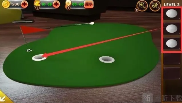 8、请到小型高尔夫球场,将三个球放入左侧的圆形孔中,然后您可以在右侧的圆形孔处获得一把钥匙。