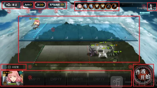 ⑩部署完毕,点击后开始我方作战