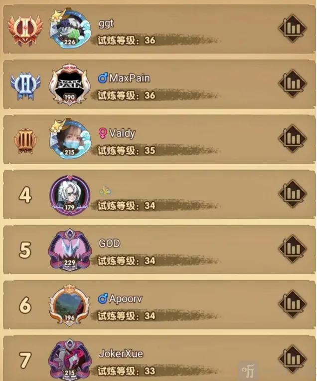 主神试炼有专门的排行榜,根据通关时间与最高难度而定,又是一场竞速比赛。