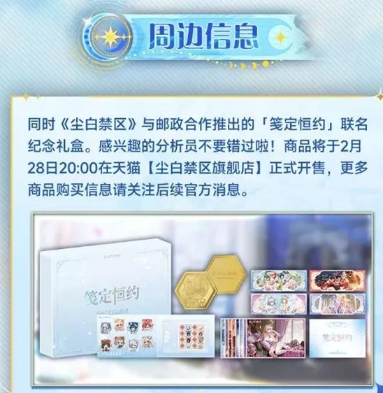 开售时间:2026年2月28日20:00发售数量:限量1500套,售完即止购买渠道:天猫商城搜索尘白禁区旗舰店