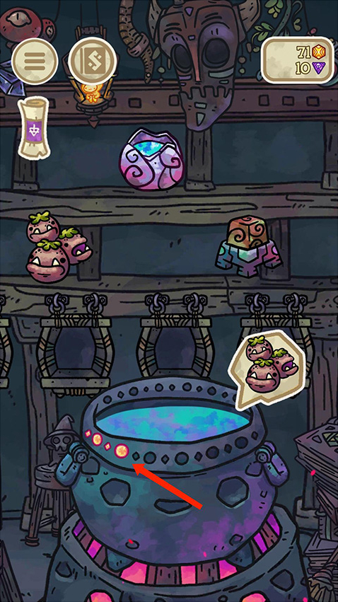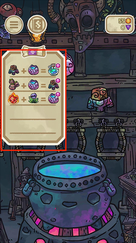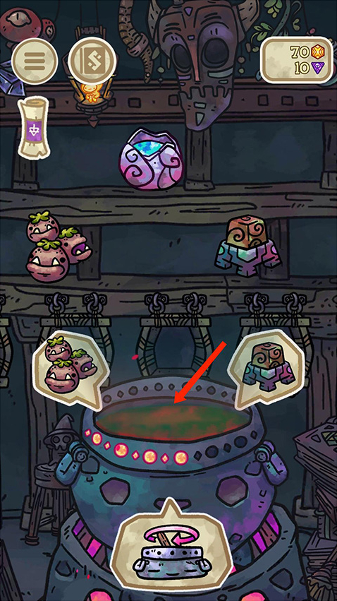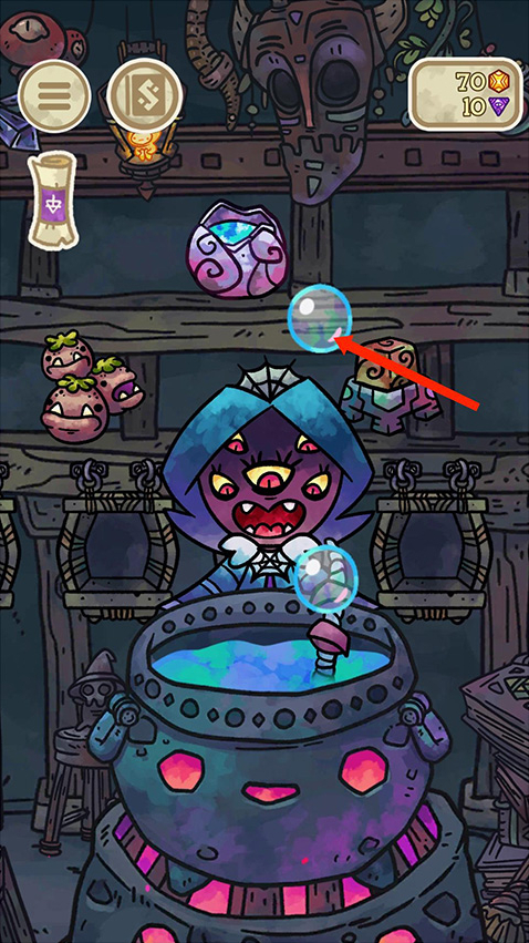 2、在搅拌时坩埚中会冒出泡泡, 点击它们有时会得到一些金币和宝石,