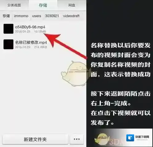 6、名称替换以后你要发布的视频封面会变为你复制名称视频的封面,这表示替换成功,接下来返回陌陌点击右上角-完成,在点击下视频就可以发布了。