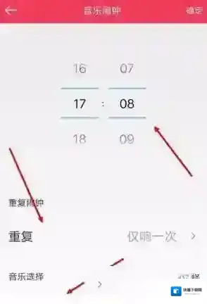 我们选择一个自己想要它响铃的时间,闹铃如果是每天都需要就选择每天重复,不是的话就想要那天就选择那天就行了。响铃的音乐我们可以去选择自己本地下载好的歌曲(好像只能使用本地已有的歌曲,这点我不太满意)