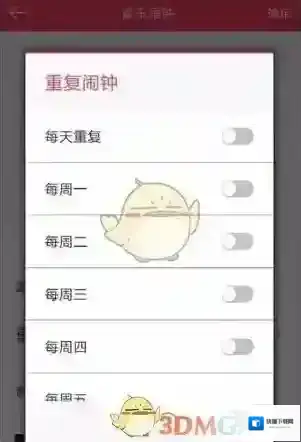 在添加音乐闹铃界面可以选择闹铃的时间、重复的日期以及音乐。