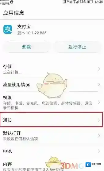 进去应用管理之后,找到该应用点击进去,然后点击通知,如下图所示: