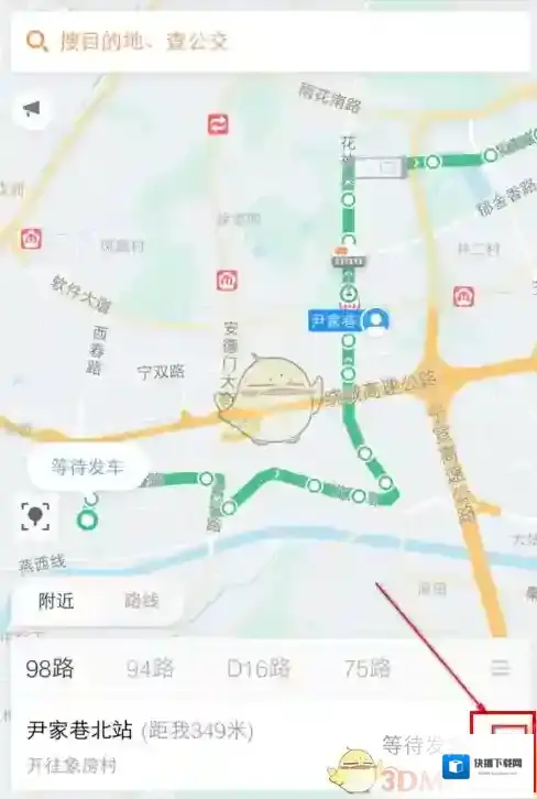5、然后我们返回刚才的界面,就可以看到98路的路线以及现在的位置,如图98路现在正在等待发车