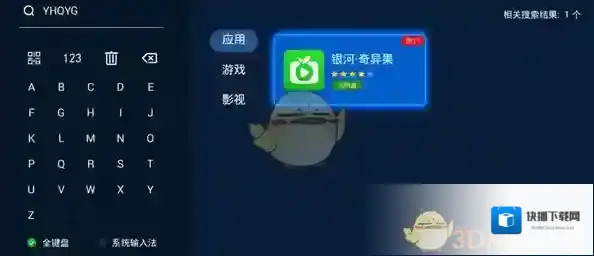 在界面中直接能看到TV版的爱奇艺,或者搜索字母YHQYG,运行打开银河奇异果。