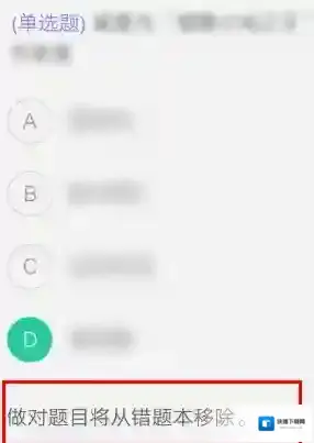 4、然后会有对应的题目出现,选择一个自己认为正确的答案,如果选择正确这道题就会从错题本里面移除了。