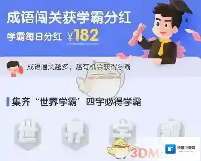 答题通过1000关,可参与抽奖,有一定几率抽取到学霸答题每通过1000关可参与抽奖,抽奖集齐“世界学霸”四字可获得分红奖励。