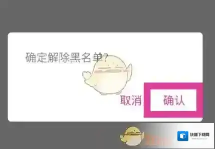4、在弹出的确认解除黑名单窗口中,点击右边的“确认”,就可以取消黑名单了。如图所示