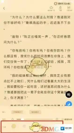 3、我们在第二栏就能够看见亮度一览,这里有着调整亮度的进度条,用户通过控制小球就能够快速的调整阅读小说的时候屏幕亮度。
