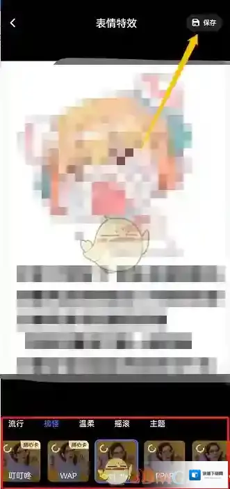 5、从下方选择自己喜欢的表情特效后,点击右上角的保存即可。