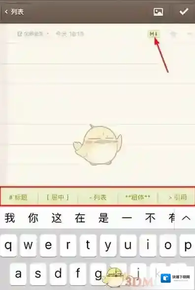 5、接着在编辑页面点亮M符号,就可以调整字体了。在需要加粗的文字的两端各输入**,这时文字便被加粗了。