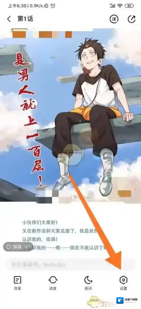 4、接着进入到动漫页面,点击一下桌面弹出底部窗口,选择设置打开;