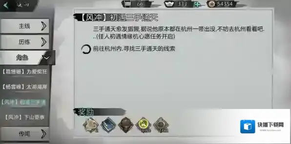 2,去杭州捉拿三手通天,随机出现在杭州任意场景,期间会加入岳mm,打三次。