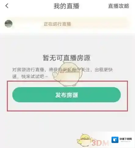 4、进去之后,可以进行直播看房,如果没有发布房源的话,需要先发布房源,根据需要使用。