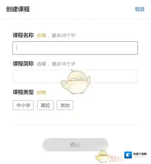 3、输入课程名称、课程类型以及课程简称,课程简称可不填写。