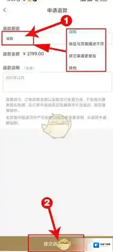 5、选择好退款原因,在下面点击“提交退款申请”即可。