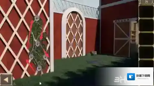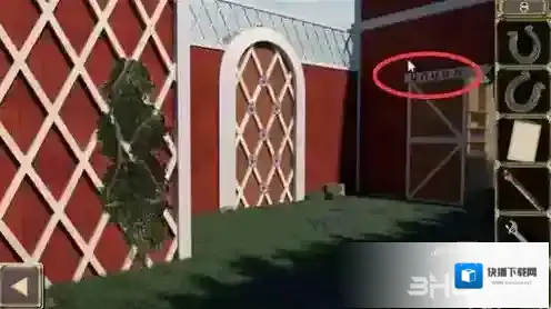 使用水壶对着红墙上的植物浇水,得到花朵点击提示,最后根据提示点击门上的花朵开门。