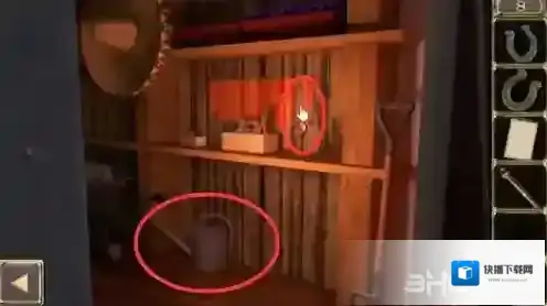 使用打火机点燃火炬,照亮储物室,得到扳手和水壶;