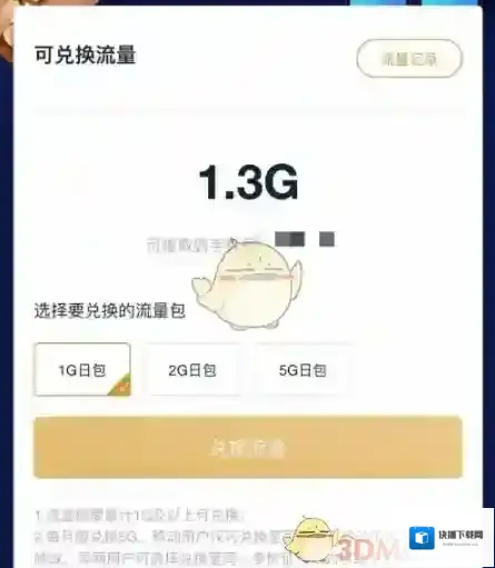 4、确认是否额度足够兑换,只能兑换到本机号码,选择流量包,点击“兑换流量”。
