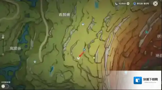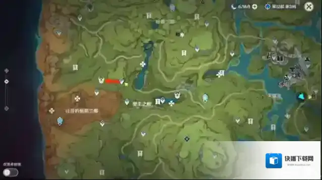 传送到左边传送点,往西南方向走,走到小山坡上即可看见