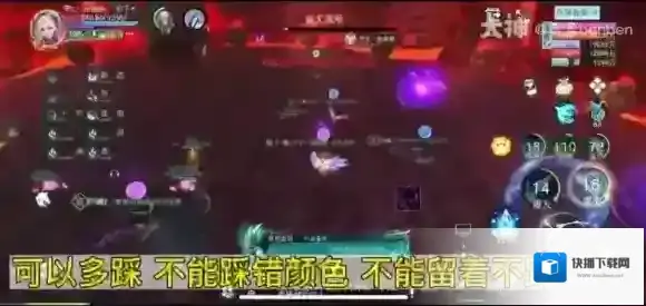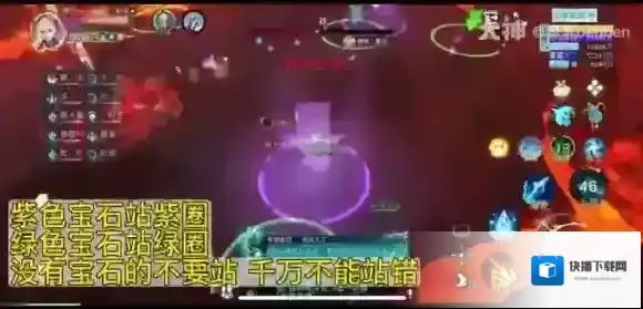 等第一波技能结束后马上找到与自己颜色相符合的圈,即紫色宝石站紫圈,绿色宝石站绿圈,头顶没有宝石的不要进圈。