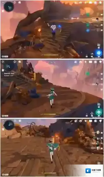 拿到刚刚那个被树藤锁住的珍贵的宝箱之后,我们直接往下跳,回到火花的旁边,以正面面对火花为初始位置,向左进入第三个门扉。详细解谜可以看下面这个视频。