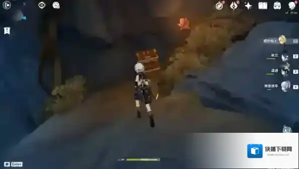 走完主线之后,我们再次进入辛焱秘境,此时我们的位置是在冰花的旁边。我们向下走,然后左拐,进入第一个门扉。