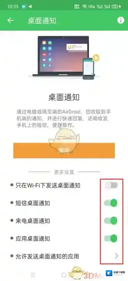 1、打开airdroid手机端,从个人-安全及远程功能设置-桌面通知内启用。单击授予权限按钮允许信息通知出现在电脑上。