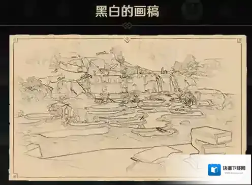 与他对话得知,他的画笔和颜料不见了,需要我们来帮忙寻找,并给了我们俩副在不同地方画禄华池的线索画,一个彩色,一个黑白。