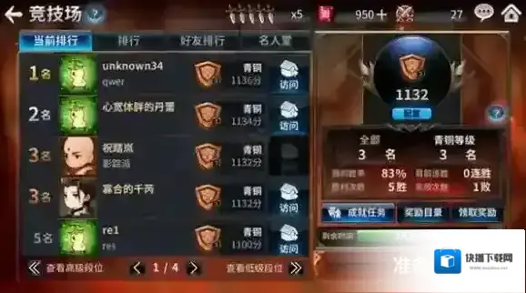 玩家可以组建自己的队伍在竞技场中和其他玩家一较高下。竞技场的进入需要钥匙,每打一场消耗一把钥匙,钥匙可以随着时间恢复,每名玩家竞技场钥匙上限是5把。竞技场引入了时下比较流行的天梯分段,达到某一个段位即可领取一定的奖励。竞技场赛季以周为单位进行结算。对于喜欢PVP的玩家来说,天梯才是证明自己实力最好的舞台。
