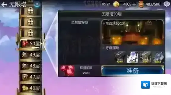 游戏独有的无限塔玩法,鼓励玩家尽力往更高层次冲刺。无尽塔共60层,可重复挑战,但只有第一次挑战时才能够获得奖励。每层获得金币、英雄卡牌、武器防具、荣誉等,属于玩家必须挑战的场景之一,每次挑战会消耗一个千层塔钥匙,每30分钟恢复一个钥匙。