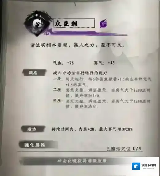 第五部众生相,玩家前往(738,1237)这个位点,击败该位点上的boss武阳,就可以成功解锁该秘籍。玩家在用功后,内吸可增加20,最大真气增加20%。