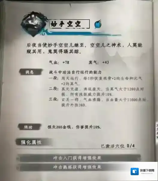 第三部秘籍是周天吐纳功,通过完成主线内容就能够自动获取。在战斗当中,该工法可自行运作,在吐纳调息后,则可以大幅度回升自身的气血值和真气值。