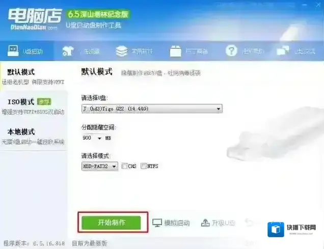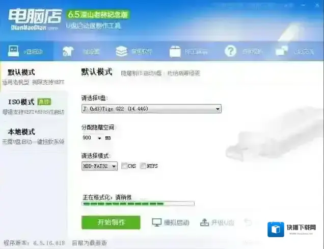 4、回到制作界面 插上U盘然后点击开始制作;(U盘会格式化,建议用空盘或备份好重要数据)