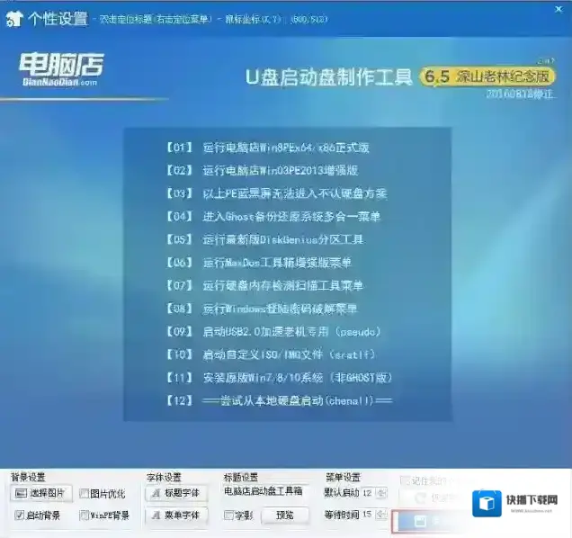 2、首先我们做一下个性化设置,为什么?(去掉广告和软件植入!)点击个性化后出现以下界面,取消右下角的电脑店赞助商。(当然你无所谓也可以略过这一步);