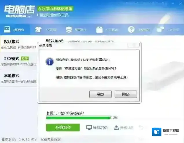 5、接着开始解压系统,然后重启后部署过程。Win7系统重装完成,电脑又变得非常的流畅了!U盘安装Win7由几个步骤组成:1、制作U盘启动盘2、拷贝系统镜像到U盘中3、使用U盘安装系统步骤一:制作U盘启动盘U盘一个(建议8G以上,速度较快的为佳)U盘启动盘制作工具(常用的有:电脑店、大白菜、老毛桃等)1、以电脑店U盘启动盘制作工具为例,建议下载装机版 UEFI 二合一版本支持传统模式和UEFI模式下的安装,下载后安装并打开,如下图: