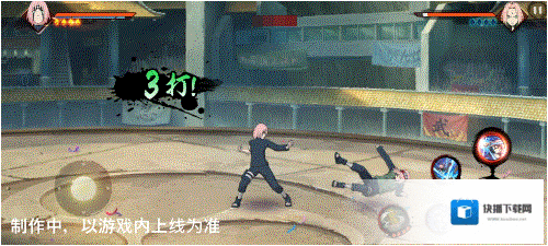 蓄力值在三阶段时,使用组合技,小樱的上勾拳将对手击飞至决斗场墙壁,随后快速突进,一拳将嵌在决斗场墙壁中的对手击飞。