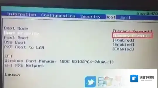 5、如果使用的是传统的Bios模式,还需要把Boot Priority设置成Legacy First,按F10弹出窗口选择yes回车;